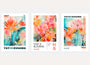 This set of three abstract floral garden art prints features vibrant botanical compositions inspired by Japanese aesthetics and modern illustrative design. Flowing flowers, organic shapes, and layered textures create a lively yet balanced visual atmosphere.