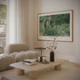 Delicate greens, airy blues, and touches of pastel pink create a romantic, calming palette that suits bedrooms, living rooms, or creative studios. This wide piece looks beautiful above a sofa, bed, or desk. Choose a framed poster for a polished, gallery-ready finish, or an unframed print for a clean, contemporary look that keeps the composition light and inviting.