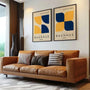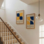 This Set of 2 wall art prints draws inspiration from classic Bauhaus design, featuring strong geometric forms in deep navy blue and warm yellow. The contrast of bold colours with minimalist shapes creates a dynamic yet balanced composition rooted in modernist principles of rhythm and symmetry. Ideal for living rooms, offices, dining areas, or creative spaces, these artworks bring energy and clarity to contemporary interiors. The set works perfectly as coordinated framed posters or as clean, high-quality unframed prints, making a confident visual statement.
