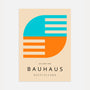 This Bauhaus-style poster features a bold geometric half-circle with clean linear divisions, combining turquoise and orange in a balanced, eye-catching contrast. Simple forms and strong color choices reflect the modernist focus on functional design—structured, minimal, and expressive at the same time.