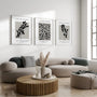 Created as a cohesive set of three, these prints bring contrast and sophistication to your space while maintaining a calm, uncluttered look. The strong silhouettes paired with muted tones create a timeless composition that feels both modern and refined.
