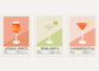 This set of three classic cocktail recipe art prints features timeless favorites — Aperol Spritz, Margarita, and Cosmopolitan — illustrated in a clean, modern graphic style. Soft color blocks, elegant glass silhouettes, and clear recipe layouts combine decorative appeal with functional design.