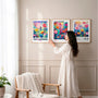 Designed as a cohesive set of three, these prints are intended to be displayed together, forming a unified floral story. They work beautifully as a statement wall above a sofa or bed, or as part of a curated gallery wall in creative interiors.