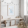 Perfect as a framed poster above a crib, near a changing table, or in a play corner, it also works beautifully as a clean unframed print for a lighter look. A lovely gift for new arrivals, baby showers, or birthdays, designed to suit modern, Scandinavian, and neutral interiors.