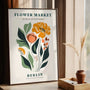 This vintage-inspired botanical wall art captures the charm of a European flower market with warm tones of yellow, orange, and green. Decorative floral forms and elegant typography create a balanced composition that feels both nostalgic and modern—bright, tasteful, and easy to style.