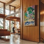 Vivid reds, greens, purples, blues, and yellows collide in confident contrasts, suggesting movement, warmth, and a sense of artistic freedom rather than literal detail. Printed in high quality to preserve the texture of brushwork and the intensity of the palette, and finished with an elegant frame, this framed canvas print makes a striking statement in bright modern spaces, minimalist interiors, or eclectic rooms needing a bold accent.