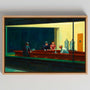 This framed canvas print reproduces Edward Hopper’s iconic Nighthawks, capturing a quiet nighttime scene filled with light, stillness, and emotional distance. The illuminated diner, sharp contrasts, and restrained colour palette create a powerful sense of urban solitude and modern realism.