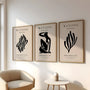 This set of three wall art posters is inspired by Henri Matisse’s late-period cut-out aesthetic and his modernist approach to simplified form. Fluid lines and reduced shapes create compositions that feel dynamic yet perfectly balanced—minimal in detail, strong in graphic impact.