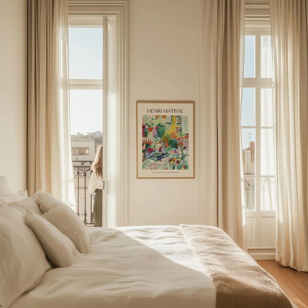 Perfect for modern, creative, and eclectic interiors, it brings colour and inspiration to living rooms, bedrooms, studios, or a home library. Display it as a framed poster for a polished statement, or choose an unframed print for a clean, gallery-style look. A beautiful choice for art lovers who want a scene that combines everyday calm with Matisse’s fearless colour.