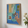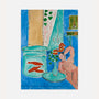 This Henri Matisse poster features Goldfish and Sculpture (1912) in a full-cover format, showing the complete composition with its bold colour fields and decorative rhythm. A still life with an aquarium of goldfish and a sculptural figure is rendered in intense blues and expressive forms, highlighting Matisse’s fearless approach to light, colour, and modern design.