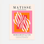 This Henri Matisse–inspired poster is an expressive burst of color and shape. Dynamic tones of pink, orange, and red are contrasted with organic cream forms, creating a vibrant composition influenced by the iconic Papiers Découpés style. Bold yet balanced, it’s wall art that brings warmth, movement, and modern character to your space.