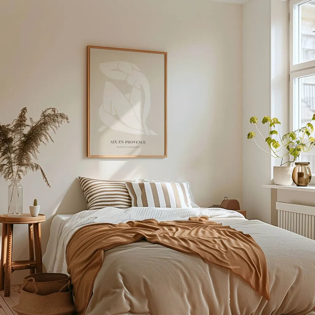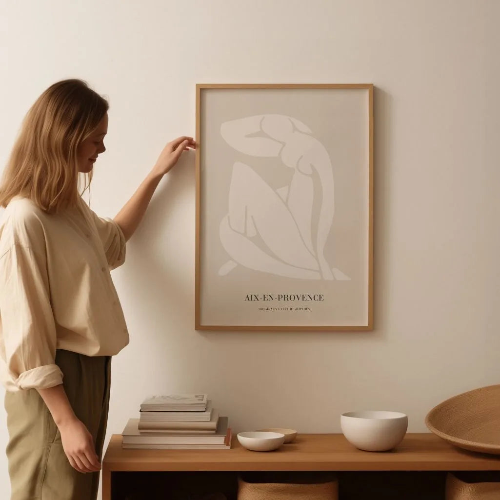 Inspired by the modernist vision of Henri Matisse, this Aix-en-Provence poster features a delicate female silhouette drawn with soft, organic lines. The minimalist composition emphasizes harmony and simplicity, while the light beige palette adds a calm, timeless character to the artwork.
