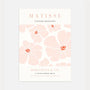 This Henri Matisse–inspired poster features a soft floral composition influenced by the Papiers Découpés style. Large stylized flowers in powder pink are lifted with warm red accents, creating wall art that feels fresh, light, and gently expressive.