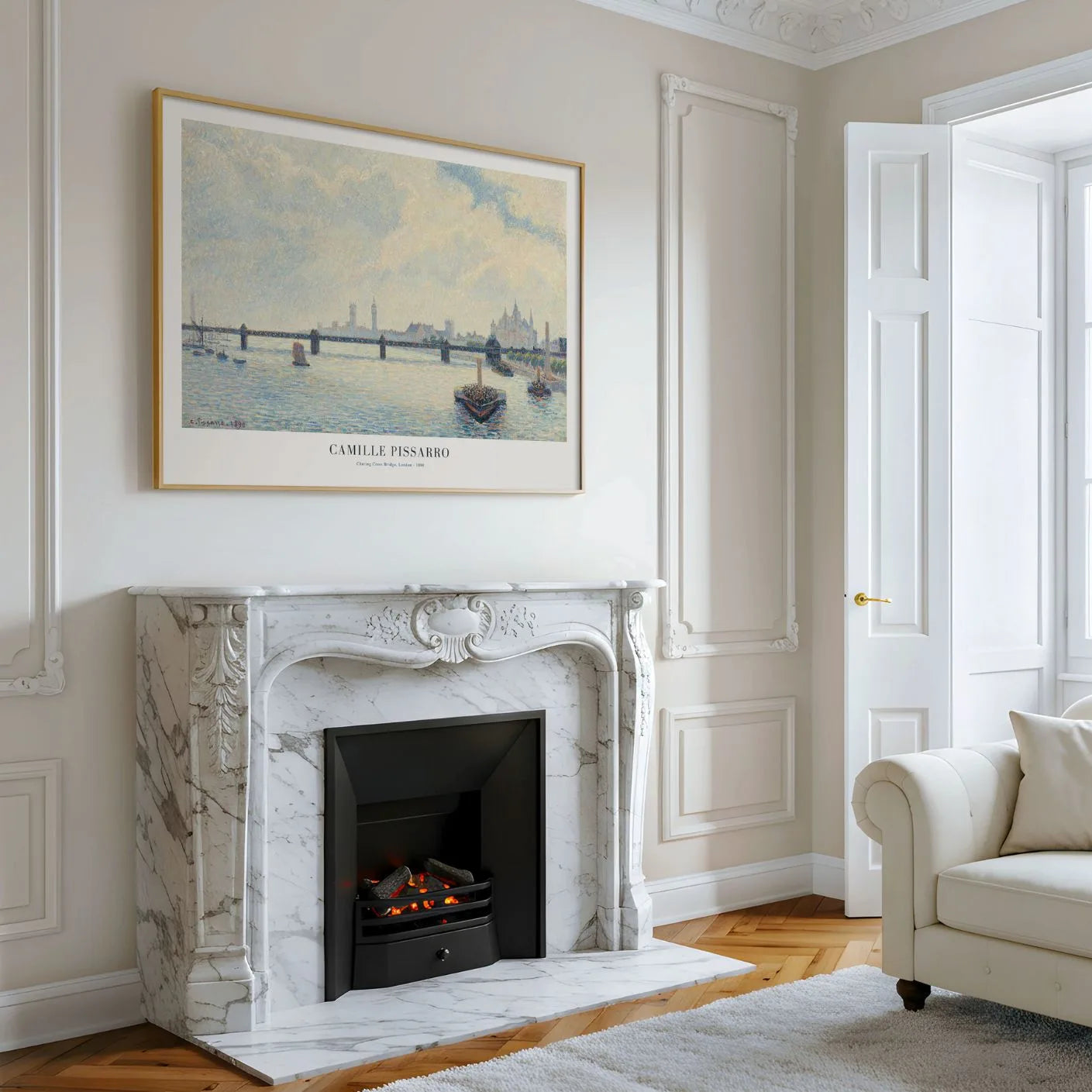 Bring a quiet, atmospheric view of London into your space with Camille Pissarro’s Charing Cross Bridge, London. This impressionist cityscape wall art captures the Thames in soft haze, where delicate light and gentle reflections create a mood of calm, silence, and thoughtful elegance.