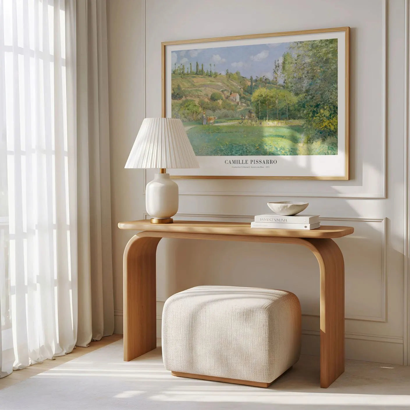 Pastel tones and layered greens create a warm, natural harmony, while Pissarro’s delicate brushwork keeps everything light and breathable. The result is an artwork that feels calm and welcoming, perfect for interiors that value nature, simplicity, and timeless French elegance.