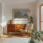 Pissarro’s subtle palette and relaxed composition reflect the peaceful rhythm of the English countryside. Light greens, soft florals, and open space give the scene an airy quality—perfect for interiors that feel bright, natural, and welcoming without excess decoration.