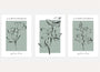 This set of three sage green botanical prints features minimalist floral line art in a soft charcoal tone, placed on a muted grey-green background. The design is intentionally airy and calm, using organic outlines and gentle spacing.