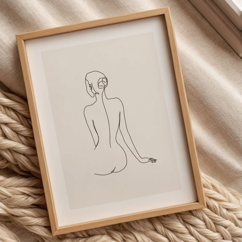 “Silhouette Serenity” is minimalist wall art featuring a female figure in a gentle, natural pose. A clean, flowing line captures the softness of the form, creating a quiet, elegant composition that feels modern, airy, and balanced—perfect for spaces designed around calm and simplicity.