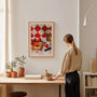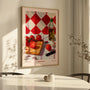 This refined wall art print features a modern still life inspired by Italian cooking, with ripening tomatoes, olive oil, and garlic arranged in a warm Mediterranean glow. Intense colour, realistic detail, and soft light evoke the atmosphere of a sunlit table, bringing culinary elegance and comfort into kitchens, dining rooms, or restaurant interiors. Perfect for lovers of cooking, artful décor, and Italian-inspired styling, this piece adds character without feeling busy. Display it as a framed poster for a polished statement or choose a premium unframed print for a clean, gallery-style finish. It also pairs beautifully with cocktail and seafood-themed wall art.