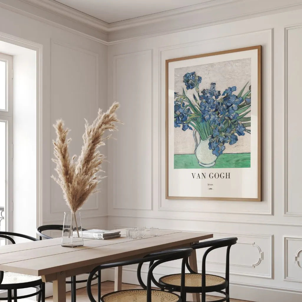Painted in the final months of Van Gogh’s life, this floral still life feels contemplative and fresh—perfect for interiors that value simplicity and balance. It pairs beautifully with scandi, japandi, modern, or classic decor and works well in a bedroom, living room, or office. Choose a framed poster for a polished, gallery-ready finish, or an unframed print for a clean, contemporary look that keeps the palette airy and bright.