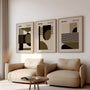 A balanced palette of green, olive, and beige, finished with deep dark accents, keeps the mood calm yet distinctive. Each print stands confidently on its own, while together they create a cohesive triptych for a refined statement wall. Display them as a framed poster set for a gallery-like presence, or choose each piece as an elegant unframed print for a lighter, minimalist finish. Ideal for modern living rooms, studies, creative studios, and architecture-led interiors inspired by 20th-century design.
