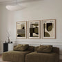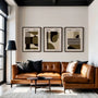 A balanced palette of green, olive, and beige, finished with deep dark accents, keeps the mood calm yet distinctive. Each print stands confidently on its own, while together they create a cohesive triptych for a refined statement wall. Display them as a framed poster set for a gallery-like presence, or choose each piece as an elegant unframed print for a lighter, minimalist finish. Ideal for modern living rooms, studies, creative studios, and architecture-led interiors inspired by 20th-century design.